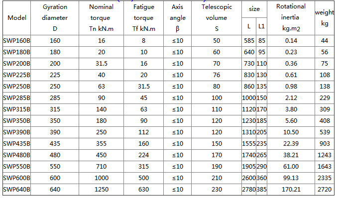 SWP-B telescopic short universal coupling Basic Parameters And Main Dimensions(JB/T 3241-2005) mm