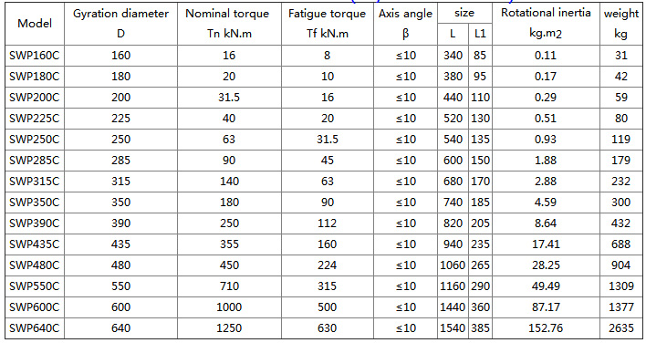 SWP-C non telescopic short universal coupling Basic Parameters And Main Dimensions(JB/T 3241-2005) mm