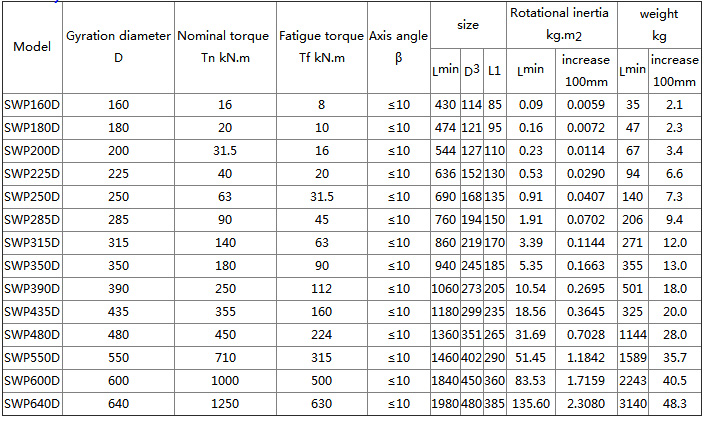 SWP-D non telescopic long universal coupling Basic Parameters And Main Dimensions(JB/T 3241-2005) mm