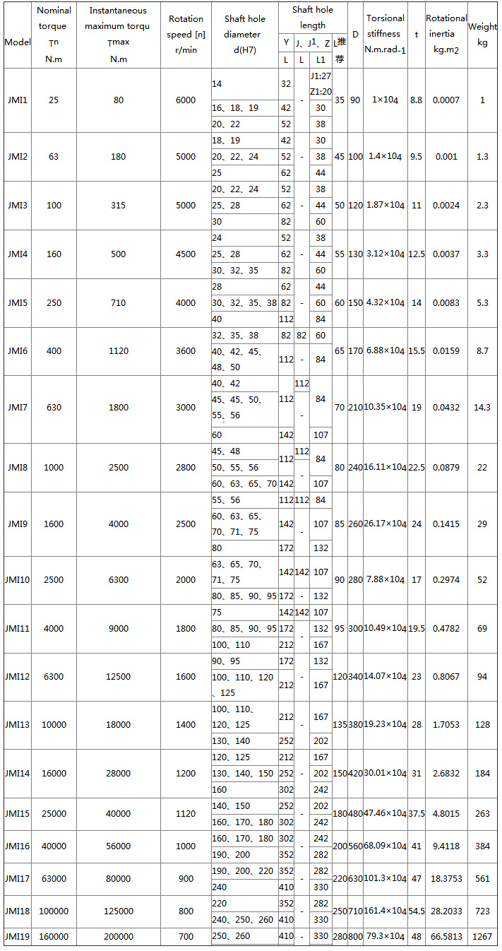 JMI disk coupling Basic Parameters And Main Dimensions(JB/T 9147-99) mm ![]() |