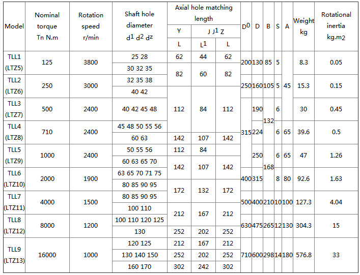 TLL (LTZ) elastic sleeve coupling with brake wheel Basic Parameters And Main Dimensions:(GB/T 4323-84<2002>)mm