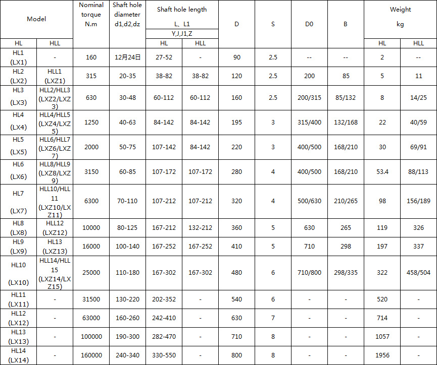 HL, HLL (LX, LXZ) pin spider coupling Basic Parameters And Main Dimensions:(GB/T 5014-85<2003>) mm