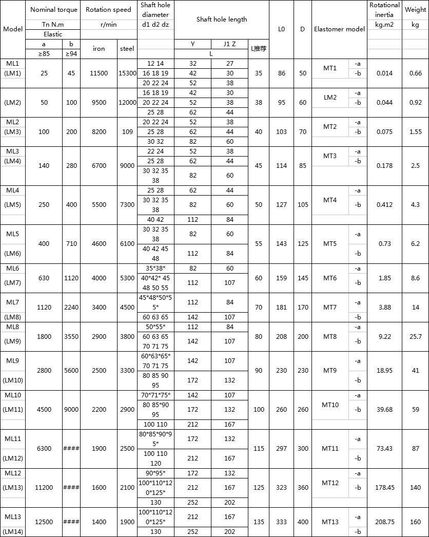 ML (LM) plum shaped elastic coupling Basic Parameters And Main Dimensions:(GB/T 5272-2002) mm ![]() |
