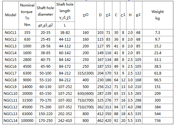 NGCL brake wheel drum gear coupling : with a small amount of axis offset compensation performance, can not be buffered and vibration damping. Small size, large torque transmission in theory, need to be lubricated and sealed, but the noise is large and the price is expensive. It is used to connect the two coaxial axis transmission. It is used for connecting horizontal two coaxial lines under low speed and heavy load conditions, such as metallurgical machinery, heavy machinery and so on. It is not suitable for high speed and high precision shafting transmission. It is not suitable for frequent starting and changeful working conditions. Matching with brake, brake components for the metallurgical machinery, heavy machinery Related products