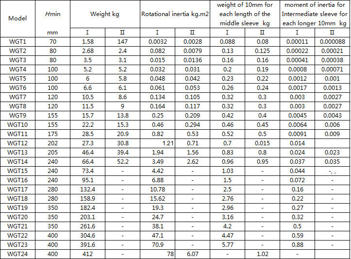 WGT - the intermediate sleeve is suitable for two axis long distance connection. The allowable speed [n] depends on the length and quality of the middle sleeve, and the critical speed should be calculated.