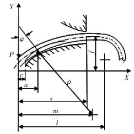 The teeth flank of a nonlinear grid coupling is curved. Supposing that the peripheral force goes through one side of half circle spring is P, as shown in figure 1. The distance a is calculated from the partition surface of the spring in grid coupling to the contact line of spring and teeth plank. It decreases along with the increase of load P.