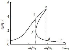For forced vibration of linear system, the continuous change of excitation frequency only result in continuous change of response amplitude. Nevertheless, for nonlinear system, the response amplitude rises along with the excitation frequency (as shown in figure 3, following the curve a-b-c). When the amplitude reaches the place of c, any slight increase of frequency will make it drop from c to d. On the contrary, when the excitation frequency increases continually, amplitude will move along the curve e-d-f. When frequency reaches ω1, amplitude will reach f. Then, any slight decrease of frequency here will make the amplitude zooming from f to b. Because of jumping phenomenon, the continuous change of amplitude under the affect of frequency will not be no longer valid. According to above analysis, it is known that thanks to the application of nonlinear grid couplings, the system amplitude will not increase indefinitely when the excitation frequency is close to system frequency.